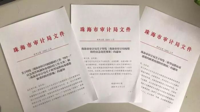 自新型冠状病毒感染肺炎疫情发生以来,珠海市审计局党组高度重视,切实提高政治站位,深入学习贯彻习近平总书记关于疫情防控工作的系列重要讲话和重要指示批示精神,严格落实党中央、省、市关于疫情防控工作的部署要求,带领全市各级审计机关抓实抓牢疫情防控工作,全力确保审计人员“零感染”,防疫措施、人员排查“无一漏”,疫情防控和审计业务“两不误”,坚决打赢疫情防控阻击战。